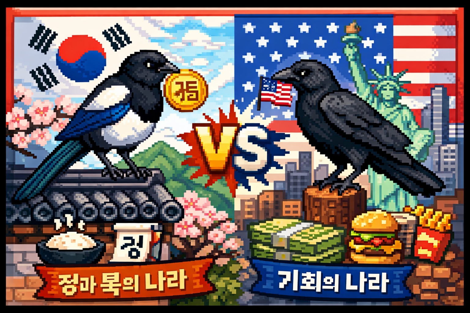 ๐Ÿฆ ํ•œ๊ตญ์˜ ๊นŒ์น˜ ์™€ ๐Ÿฆ๋ฏธ๊ตญ์˜ ๊นŒ๋งˆ๊ท€ ,์„œ๋กœ ๋‹ค๋ฅธ ๊ธธ์กฐ (ๅ‰้ณฅ)๊ทธ ์†์— ์ˆจ์€ **ํ•œ๊ตญ๊ณผ ๋ฏธ๊ตญ์˜ ‘์†๋‚ด’**๋ฅผ ํ’€์–ด๋ณผ๊ฒŒ์š”. ๋ณธ๋ฌธ