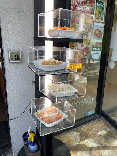 | EbiKahuku (๊ฐ๋ฆญ ์์ฐ) | $18.95 | ํ์์ด ๋ถ์ชฝ Kahuku ์คํ์ผ์ ๋ํ ์์ฐ๋ฅผ ๋ง๋๊ณผ ํจ๊ป ๋ณถ์ ๋ฐฅ ์์ ์ฌ๋ฆฐ ์ธ๊ธฐ ๋ฉ๋ด์ ๋๋ค. ๋งค์ด ์ต์ ๋ ์ ๊ณต๋ฉ๋๋ค. |