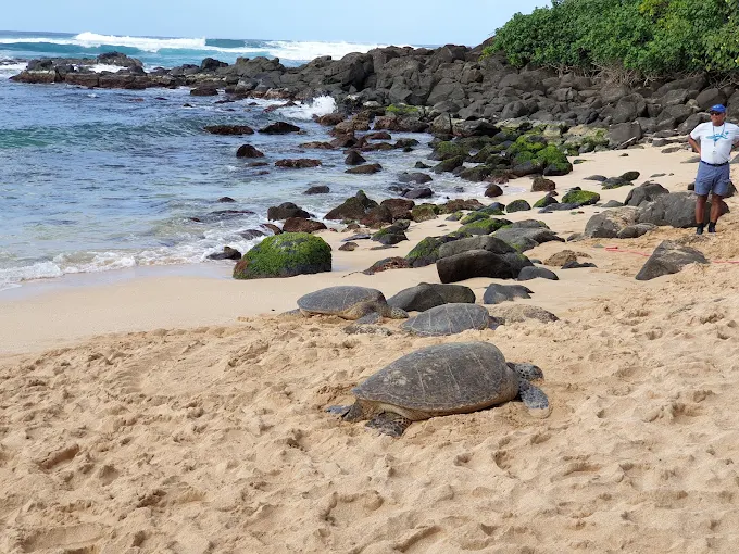 Laniakea Beach, ํ”ํžˆ **“Turtle Beach”**๋ผ๊ณ  ๋ถˆ๋ฆฌ๋Š” ์ด๊ณณ์€ ํ•˜์™€์ด ์˜ค์•„ํ›„ ์„ฌ ๋…ธ์Šค์‡ผ์–ด์— ์œ„์น˜ํ•œ ์•„๋ฆ„๋‹ค์šด ํ•ด๋ณ€์œผ๋กœ, ๋ฐ”๋‹ค๊ฑฐ๋ถ์„ ์ž์—ฐ ์ƒํƒœ์—์„œ ๊ด€์ฐฐํ•  ์ˆ˜ ์žˆ๋Š” ์ธ๊ธฐ ๋ช…์†Œ์ž…๋‹ˆ๋‹ค.