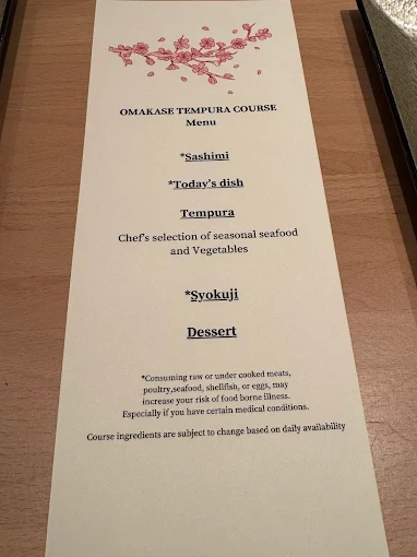 | ๋ฉ๋ด | Tempura Omakase $160 / Sushi Omakase $150 |