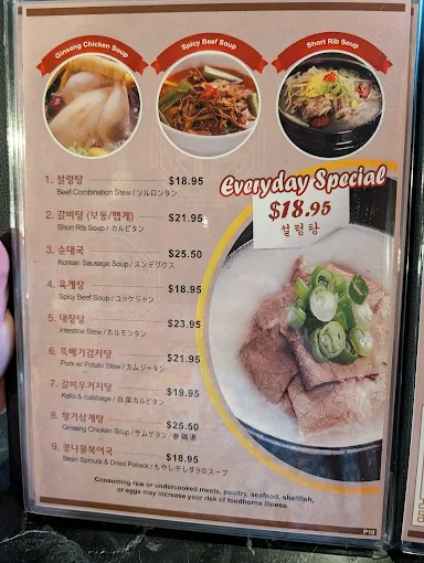 - ๋ํ ๋ฉ๋ด: ๋ค์ํ ๊ณ ๊ธฐ ๊ตฌ์ด(์นผ๋น, ๋ถ๊ณ ๊ธฐ, ๋ผ์ง๊ณ ๊ธฐ, ์ ํ ๋ฑ)์ Stone Pot Bibimbap, Cold Noodle Soup, Monkfish Stew, Combination Plate ๋ฑ. WanderlogYakiniku Korea HouseThe Infatuation